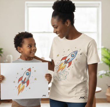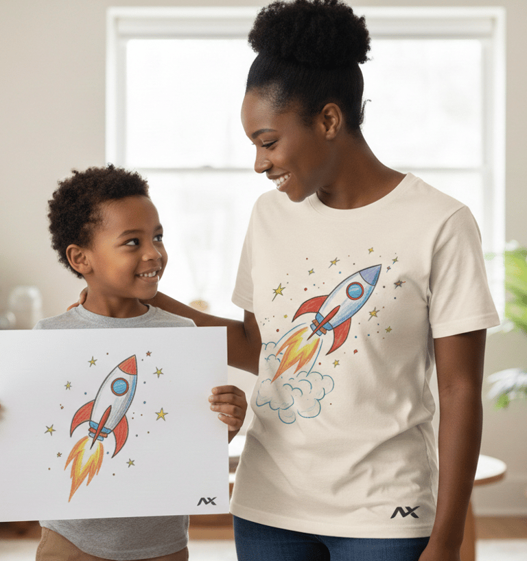Ver o desenho do meu filho estampado na camiseta trouxe lágrimas de alegria e uma emoção que nunca vou esquecer.